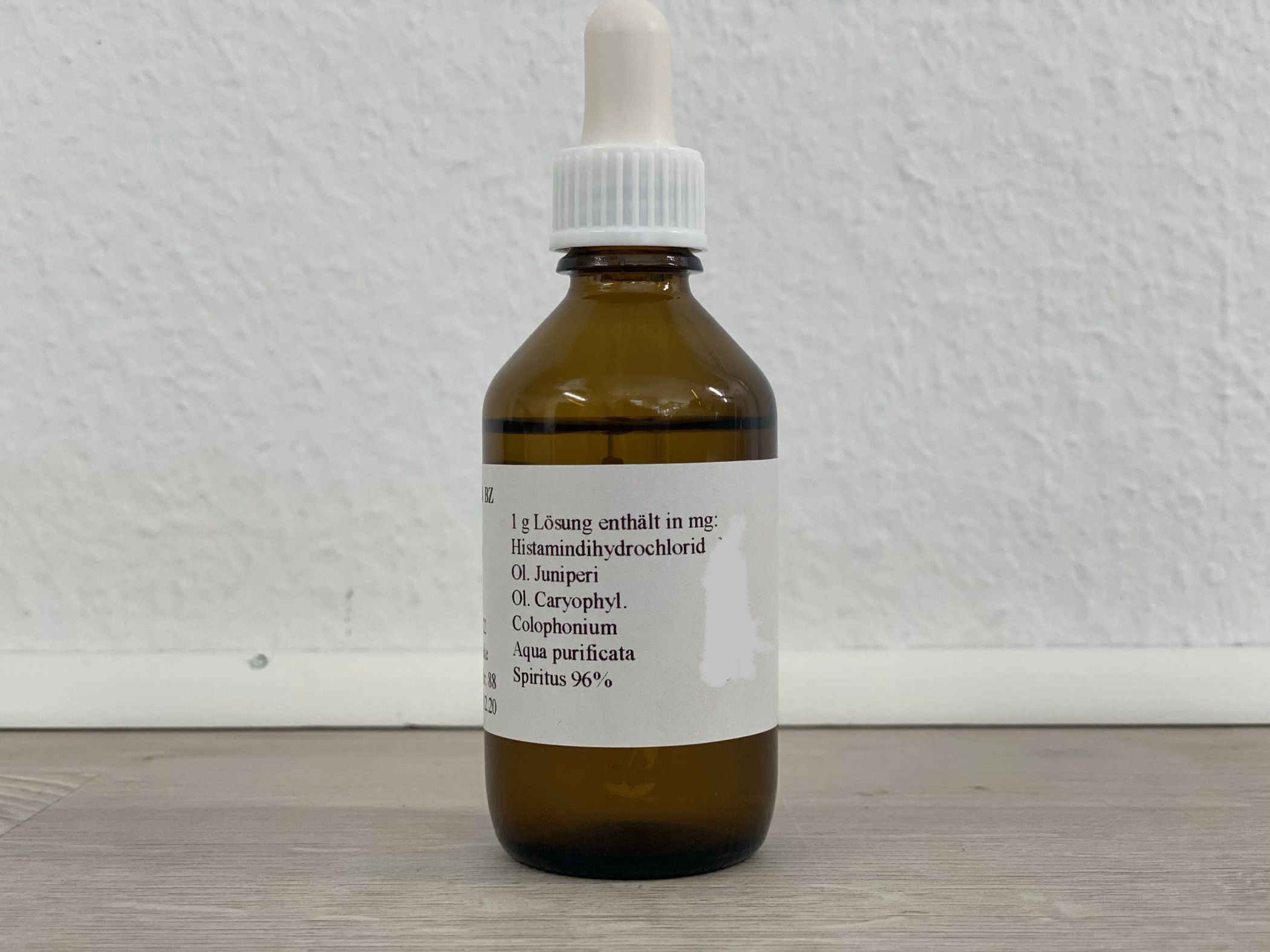 Hilfsstoffe: Colophonium, Ethanol, gereinigtes Wasser