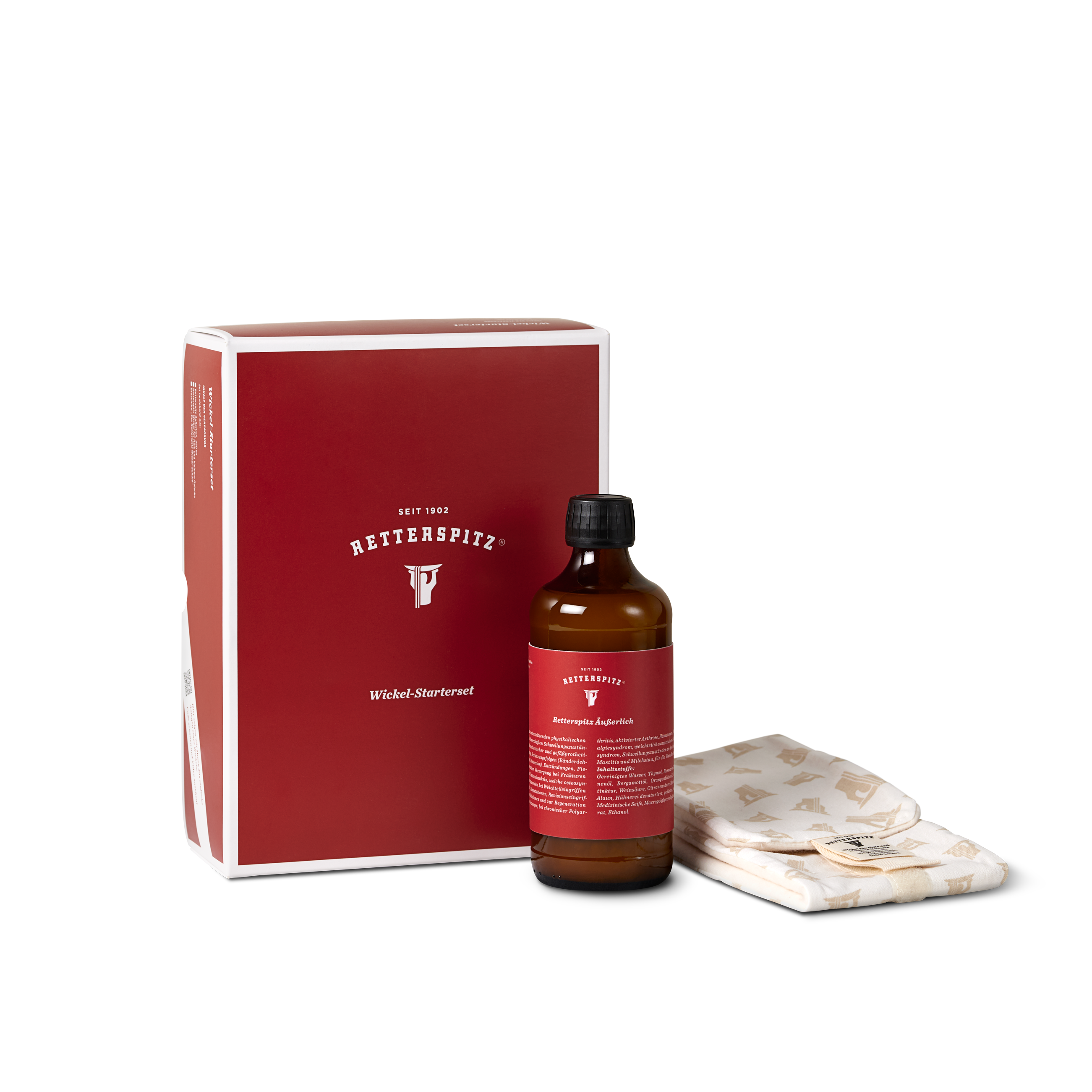 Das RETTERSPITZ Wickelstarterset Kombipackung bietet Ihnen einen einfachen Einstieg in die bewährte Wickeltherapie für zu Hause. Das Set enthält alles, was Sie für die Anwendung benötigen: Retterspitz Äußerlich, spezielle Wickeltücher sowie eine ausführliche Anleitung. Die Kombination aus pflanzlichen Wirkstoffen wie Arnika, Rosmarinöl und Thymol sorgt für natürliche Linderung bei Entzündungen, Schwellungen und Schmerzen – ideal bei Sportverletzungen, Prellungen oder rheumatischen Beschwerden. Perfekt für die Hausapotheke und bequem über die Online Apotheke bestellbar, vegan und allergikerfreundlich.